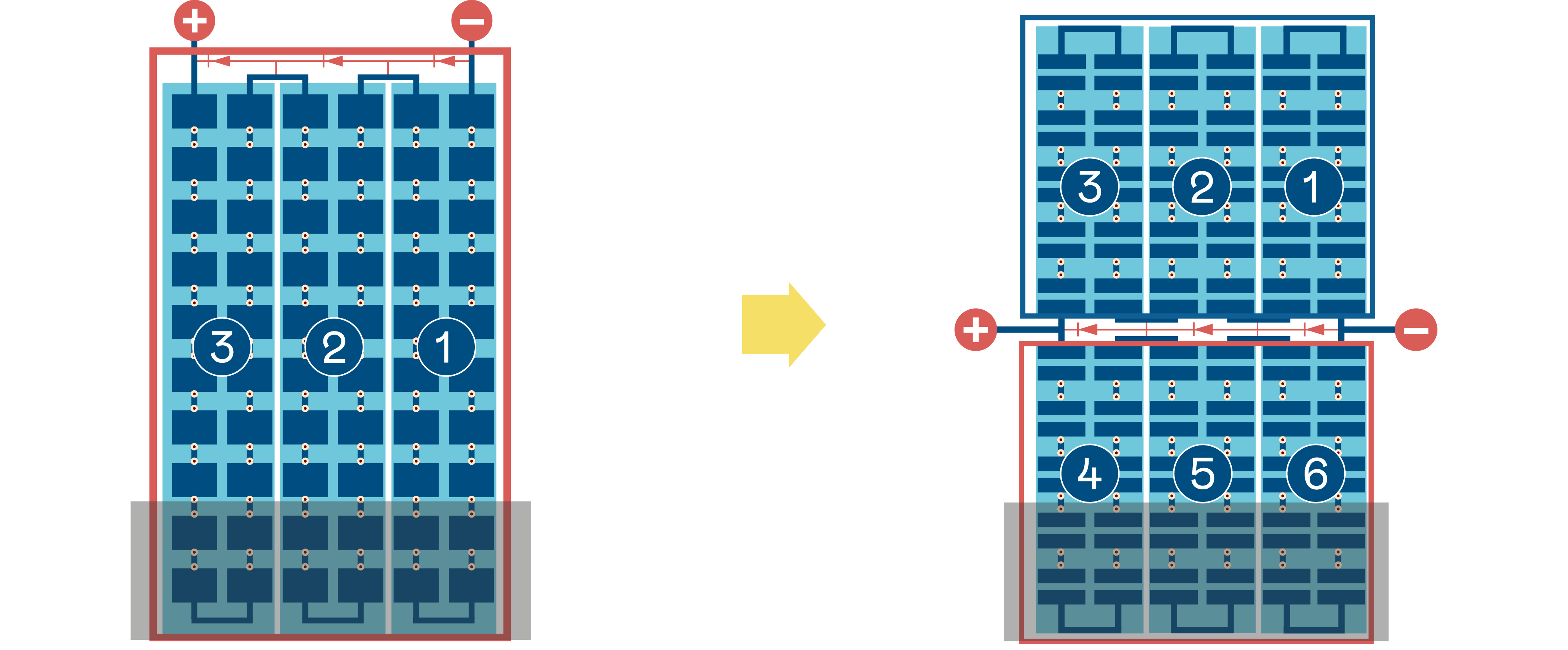 Integration with half cut battery cell reduces the impact of shading, minimizes the impacts in micro-cracks, and decreases loss due to resistance, further improving the module's power efficiency.